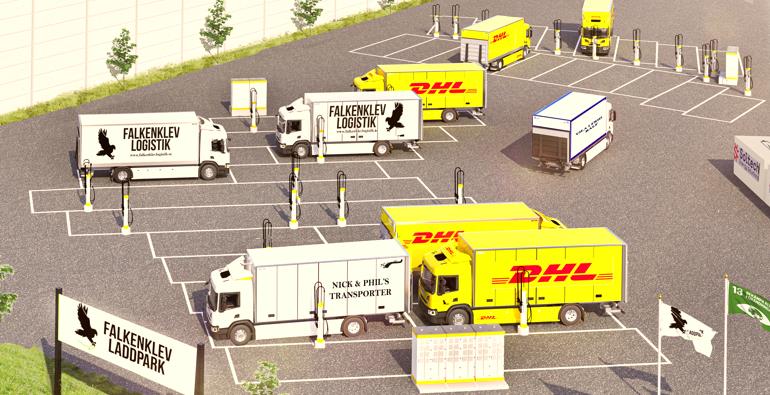 Scania sostiene l'ambizioso progetto di Falkenklev Logistik, azienda impegnata nell’elettrificazione dell’intera flotta, per la creazione di un hub di ricarica e un parco solare nel sud della Svezia.Scania ha sviluppato una soluzione di mobilità elettrica che include la fornitura di cinque autocarri elettrici a batteria e l’infrastruttura di ricarica con una potenza complessiva di 1,6 MW per l’azienda svedese Falkenklev Logistik, nell'ambito del piano visionario del trasportatore per la realizzazione di una stazione di ricarica per 22 veicoli nel nuovo deposito aziendale a Malmö.