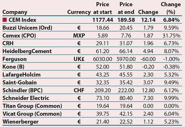 Altre importanti aziende che hanno visto la crescita sono state la tedesca Schneider Electric (+ 9,99%), la italiana Buzzi Unicem (+ 9,59%) e Saint Gobain (+ 9,49%).