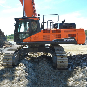La prima e più evidente qualità del DX530 LC-5 è sicuramente la velocità. Normalmente su escavatori di questa dimensione risulta sempre complicato fornire questa caratteristica. Utilissima per rendere più efficienti le operazioni di carico, ma difficile da gestire a livello idraulico viste le masse in gioco.
