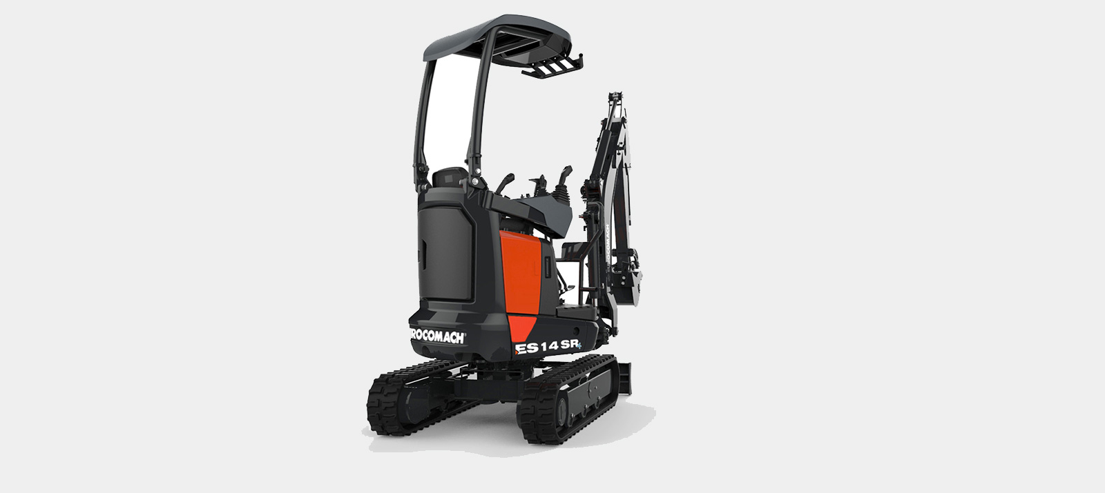 Il più compatto tra i due nuovi miniescavatori, l’ES 14 SR4 si colloca nella gamma Eurocomach tra l’ES 12 ZT4 e il’ES 15 SR (macchina da 1,65 ton nella versione con cabina); il peso operativo è quindi di 1,23 tonnellate nella versione con tettuccio (l’unica disponibile).