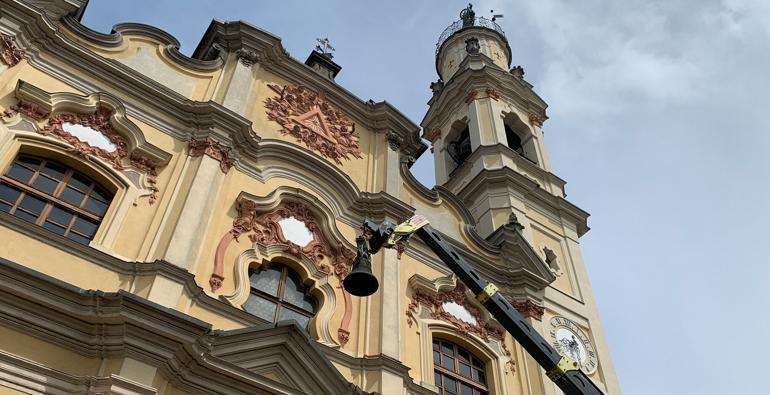 “Le due campane più grandi avevano un peso di 575 kg e 410 kg con diametri di 100 cm e 89 cm, mentre le restanti tre pesavano tra 240 kg e 170 kg, con un diametro da 81 cm a 67”, spiega Marco Martinazzi, Responsabile Commerciale della Rubagotti Carlo. “Tenendo conto di queste indicazioni, i nostri operatori hanno dovuto porre la massima attenzione sia nella fase di rimozione che, soprattutto, in quella di movimentazione dei materiali dall’alto verso il basso. Naturalmente per questo tipo di operazione abbiamo fatto ricorso all’ausilio di una speciale piattaforma aerea a noleggio, in modo da raggiungere facilmente le zone della lavorazione e consentire la discesa delle campane in totale sicurezza”.