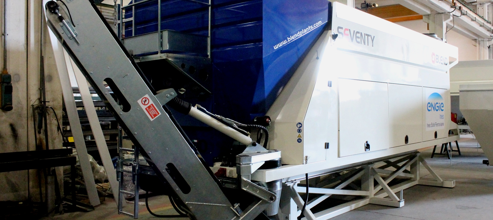 La gamma di impianti mobili è composta oggi da tre modelli nati per i veicoli industriali, ma che trovano spazio anche su carri ferroviari o altri mezzi di trasporto: E025, E050 e Seventy. Oltre al grande impianto stazionario A200 che si caratterizza per la completa autonomia e la elevata velocità di installazione in cantiere. Per aumentarne l'efficienza può operare insieme ai silos orizzontali, sempre della Blend, che hanno la stessa flessibilità operativa e di trasporto.