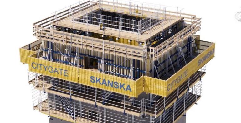 Prima dell'inizio ufficiale della costruzione, gli ingegneri di Doka, Skanska e Alimak sono stati in grado di spostarsi virtualmente attraverso il nucleo dell'edificio 3D, ispezionare in dettaglio la cassaforma rampante automatica Doka SKE50 e chiarire l'interazione con il paranco da costruzione per garantire l'accesso in ogni fase della costruzione.