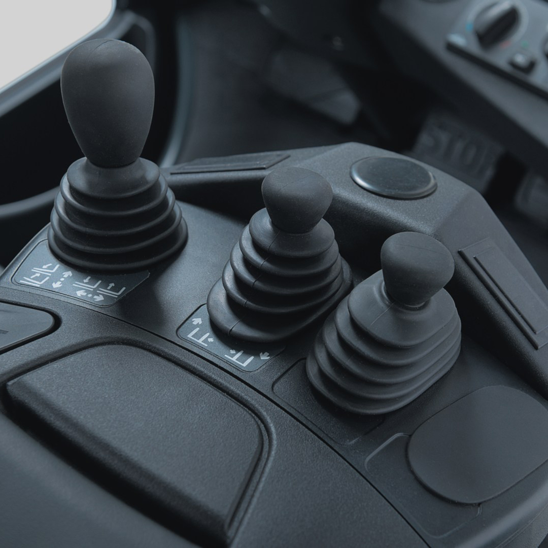 timone posteriore pivottante che diminuisce considerevolmente gli spazi di sterzata.