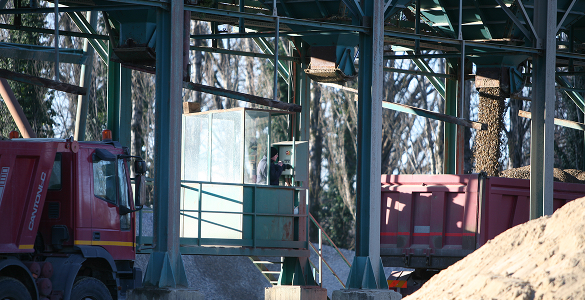 Una fase di lavorazione degli inerti, vista di una tramoggia