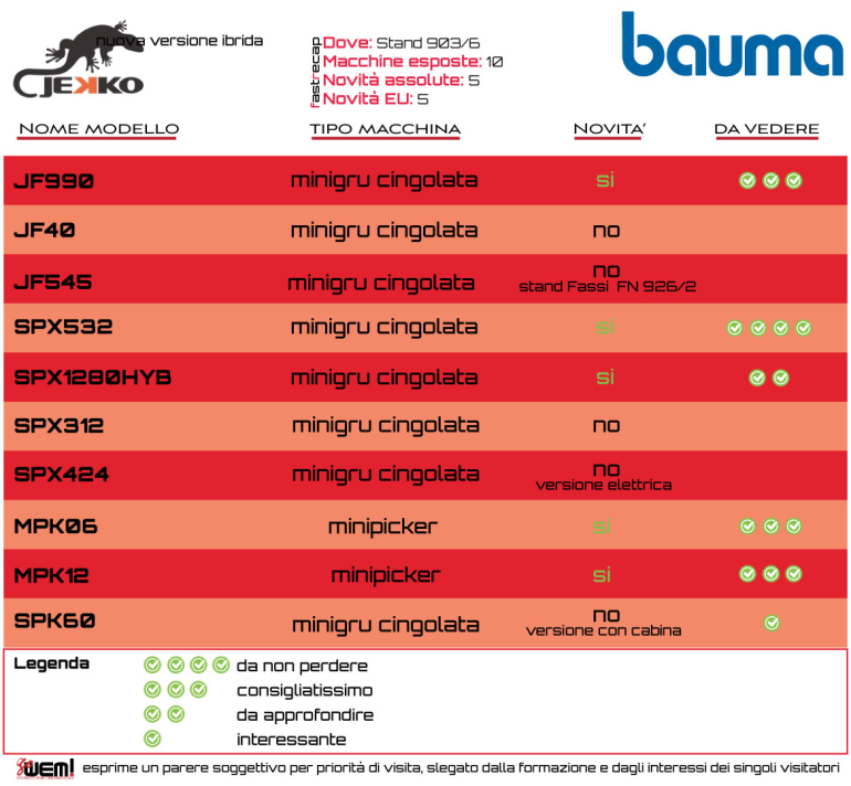 La partership con Fassi (che è entrata nel capitale Jekko) ha fatto davvero bene alla Jekko di Colle Umberto; il produttore di macchine di sollevamento fondata da Diego Tomasella aveva già di per sè performance da record sia in termini di fatturato sia per numero di novità sfornate di anno in anno, ma l'esperienza internazionale del gruppo di Albino ha portato un'ulteriore spinta, concretizzata anche da una serie di prodotti che sposano il meglio delle due aziende.Bauma 2019 sarà l'occasione di toccare con mano questa iperattività, con numerose macchine nuove, in ogni segmento in cui la Jekko opera. Star assoluta, la nuovissima minigru SPX532, che sfoggerà una motorizzazione completamente elettrica alimentata da batterie al litio. Estremamente compatta (in configurazione di spostamento passa da una normale porta di abitazione), la SPX532 stupisce soprattutto per l'attenzione all'usabilità del radiocomando e del software di controllo (sviluppato internamente in Jekko), una delle principali pecche presenti nella maggior parte dei competitor.