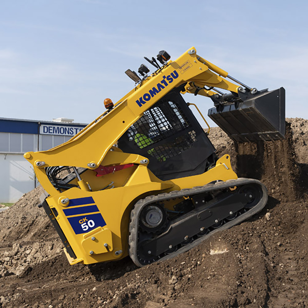 skid steer loader Komatsu SK40-8 e Komatsu SK715-8, ideali per lavori in spazi ristretti o cantieri urbani dove ogni metro quadro conta. Entrambi offrono manovrabilità eccellente, controllo fluido del braccio e benna, e una