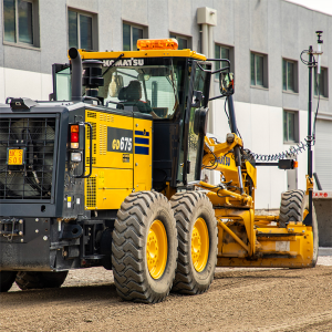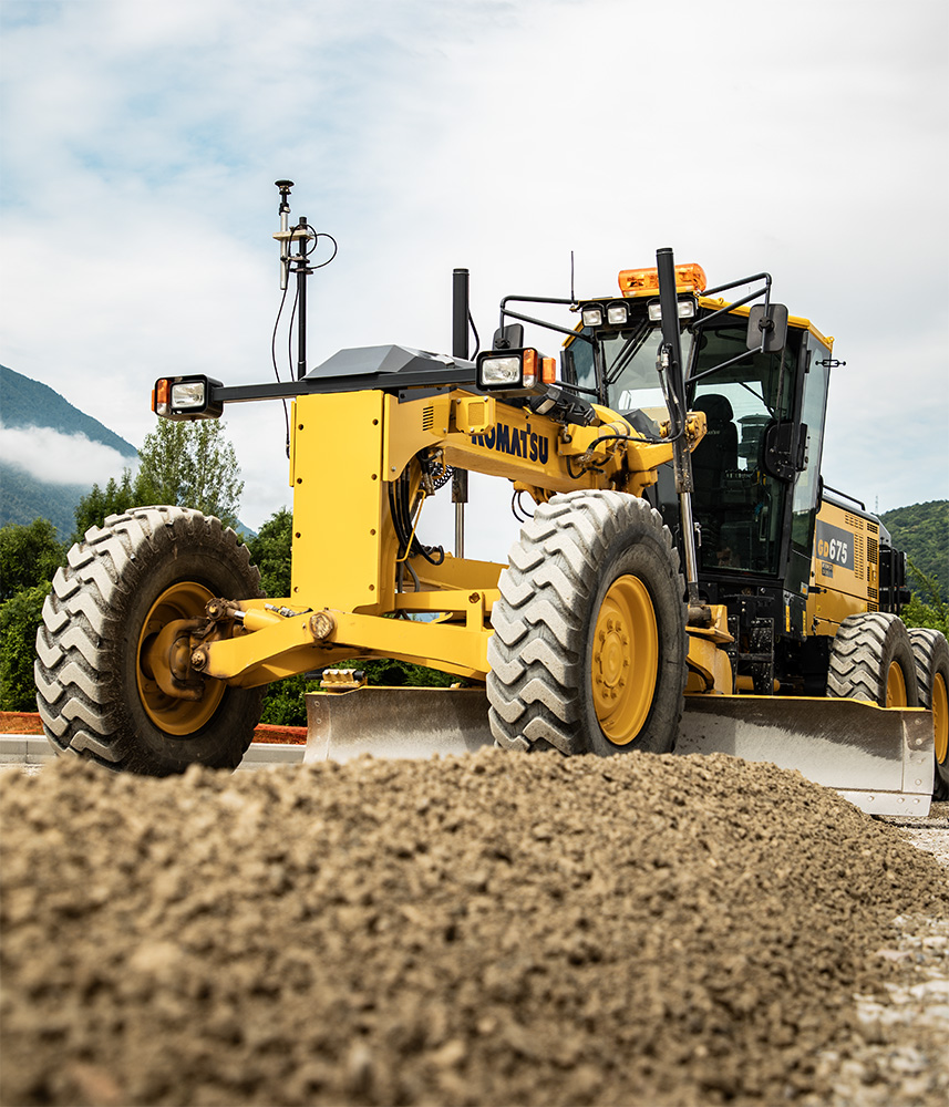 Komatsu GD675 con sistema satellitare 3D Topcon sfrutta la tecnologia Topcon per ottenere