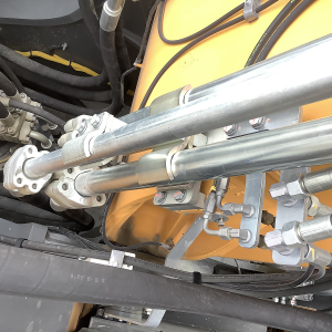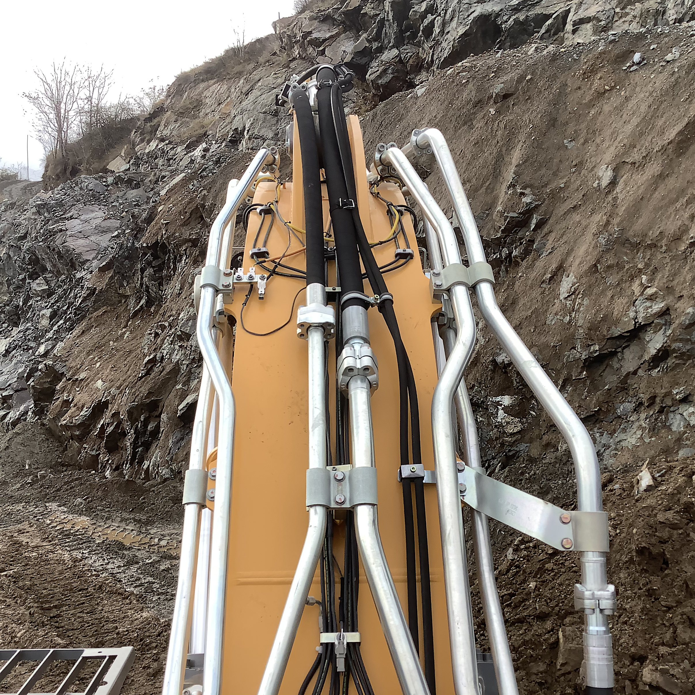 Sul braccio continua la qualità delle linee idrauliche, ottimamente staffate e disposte