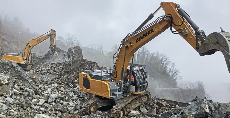 Sul cantiere di Nuova Cives, oltre al nuovo Liebherr R928-8 Litronic, al lavoro anche un Liebherr R944 con martello demolitore