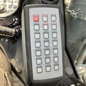 Avviato finalmente il motore, la sensazione di propulsore silenzioso e senza vibrazioni si conferma a tutti i regimi e in tutte le condizioni di lavoro, veramente un ottimo risultato che dimostra che le misure (della cilindrata) e il numero dei cilindri non contano se gestiti sapientemente! Un’autoradio e diversi vani per posizionare oggetti completano un buon posto di lavoro per il fortunato operatore a cui verrà affidata la macchina!