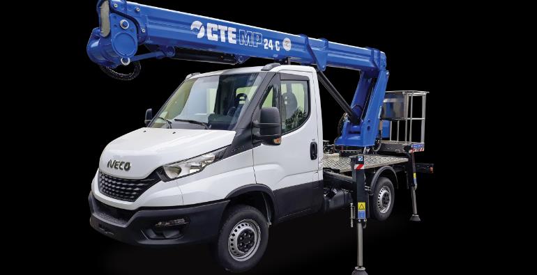 Nel 2017 veniva presentata la MP 32.19 su autocarro 7,5 ton, oggi CTE propone al mercato una piattaforma dalle dimensioni più ridotte, ma con la stessa caratteristica versatilità della gamma MP, la MP 24 C.MP sta per Multipurpose, 24 rappresenta i 24 m di altezza di lavoro raggiungibile, C sta per compact ad evidenziare fin nel nome la sua dimensione contenuta.