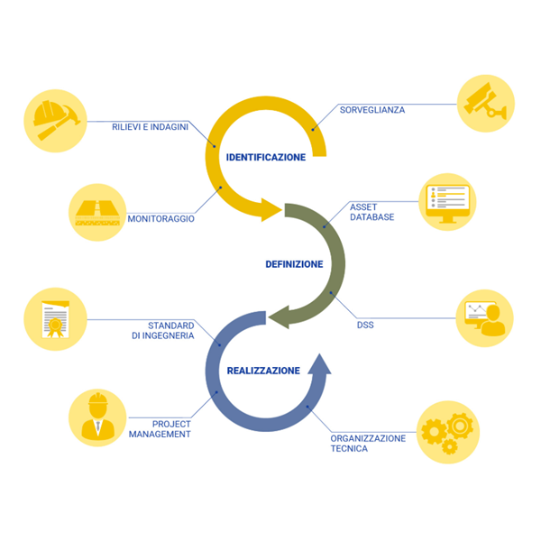 Sulla base di questo processo continuo di ispezioni e controlli viene programmato il piano di interventi di manutenzione ordinaria e straordinaria.