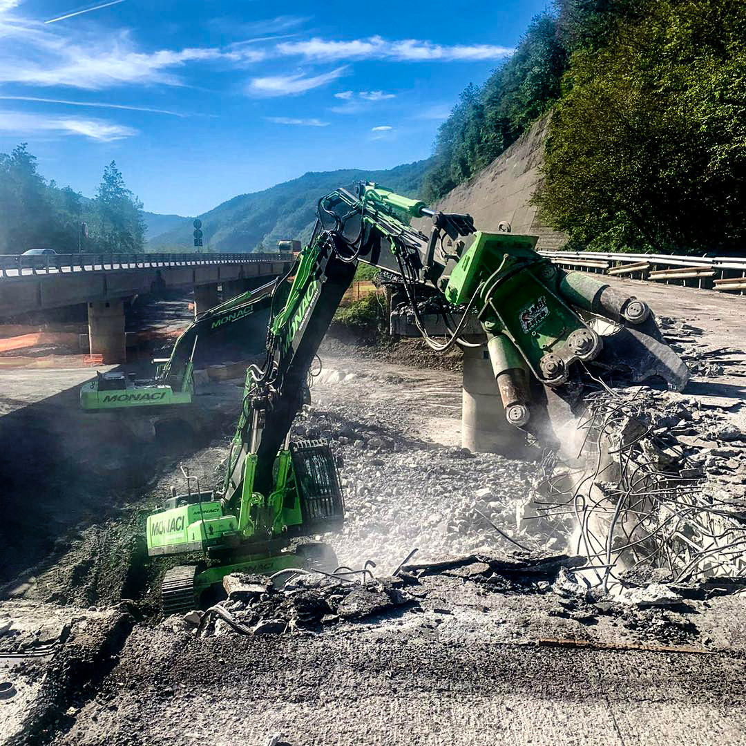 Demolizione di un ponte sull’autostrada della Cisa (credits, Monaci Demolizioni)