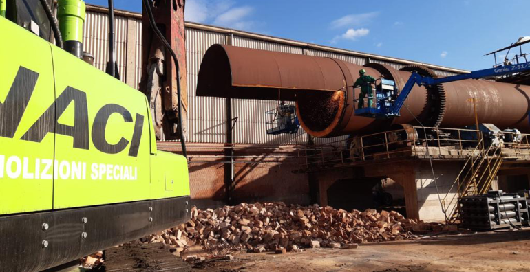 Demolizione dell’impianto di Laterlite a Retorbido, in provincia di Pavia (credits, Monaci Demolizioni)