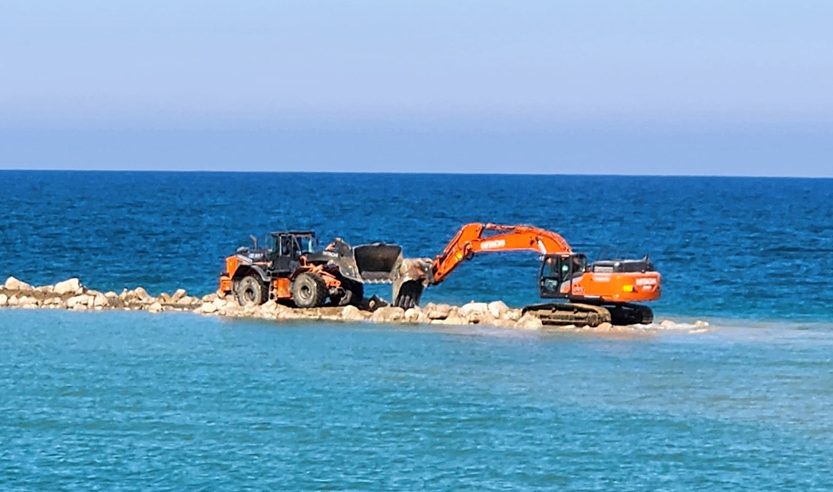 Opere di difesa costiera: Hitachi al lavoro tra mare e massi
