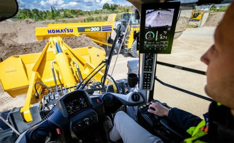 Il punto non è più solo quanto carichi o quanto velocemente lavori, ma quanto la macchina sia in grado di supportare l’operatore nelle decisioni. E qui Komatsu ha costruito un ecosistema che va ben oltre la classica retrocamera. Sistemi come KomVision, ad esempio, utilizzano più telecamere per offrire una visione a 360° dell’area di lavoro, riducendo drasticamente i punti ciechi e i rischi di collisione.