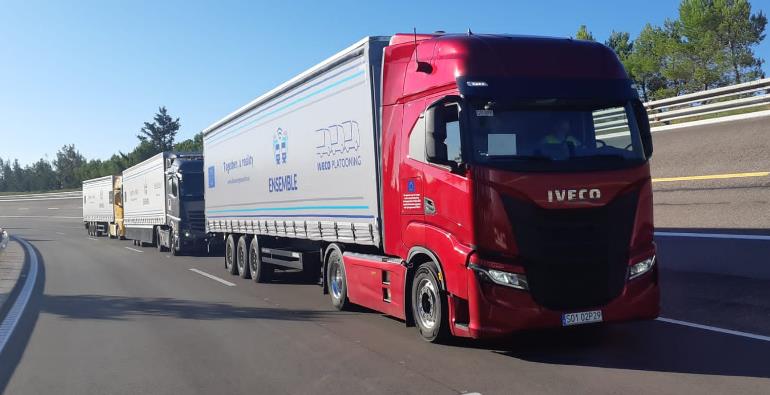 In quanto membro del consorzio Ensemble, Iveco ha partecipato allo sviluppo e all’utilizzo in condizioni di traffico reali di una tecnologia di platooning multi-brand, concordata tra tutti i principali produttori di camion in Europa.Il progetto, della durata di 46 mesi, è stato co-finanziato dall’Unione Europea e ha dimostrato che il platooning potrebbe avere un ruolo chiave nel raggiungimento di un trasporto sostenibile e nell’apertura verso il platooning multi-brand e la guida autonoma, migliorando i consumi, le emissioni di CO2, la sicurezza sulla strada e l’efficienza del traffico.