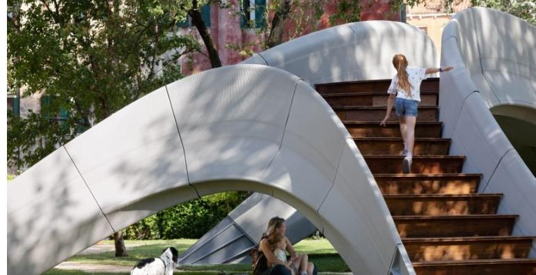 Jan Jenisch, CEO di Holcim spiega come Striatus, il ponte in 3D, attualmente esposto ai Giardini della Marinaressa a Venezia, voglia essere l’esempio concreto di come si possa costruire utilizzando meno materiale ottenendo ottime performance."Striatus mette in mostra il cemento al suo meglio, stabilendo un nuovo linguaggio per il calcestruzzo che è digitale, avanzato dal punto di vista ambientale e circolare per design".