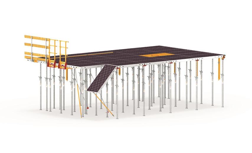 Per lastre di grandi dimensioni con geometria regolare e campate tra le colonne, la cassaforma per lastre CC-4 è stata ritenuta la soluzione migliore, garantendo sicurezza e produttività.