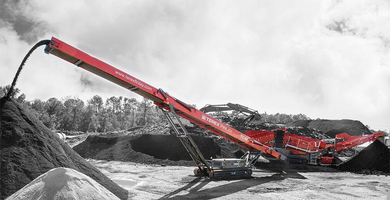 Terza macchina: il nastro convogliatore cingolato semovente TC-80, con un'altezza di scarico di 10,5 metri e una capacità di oltre 500 tonnellate per ora.