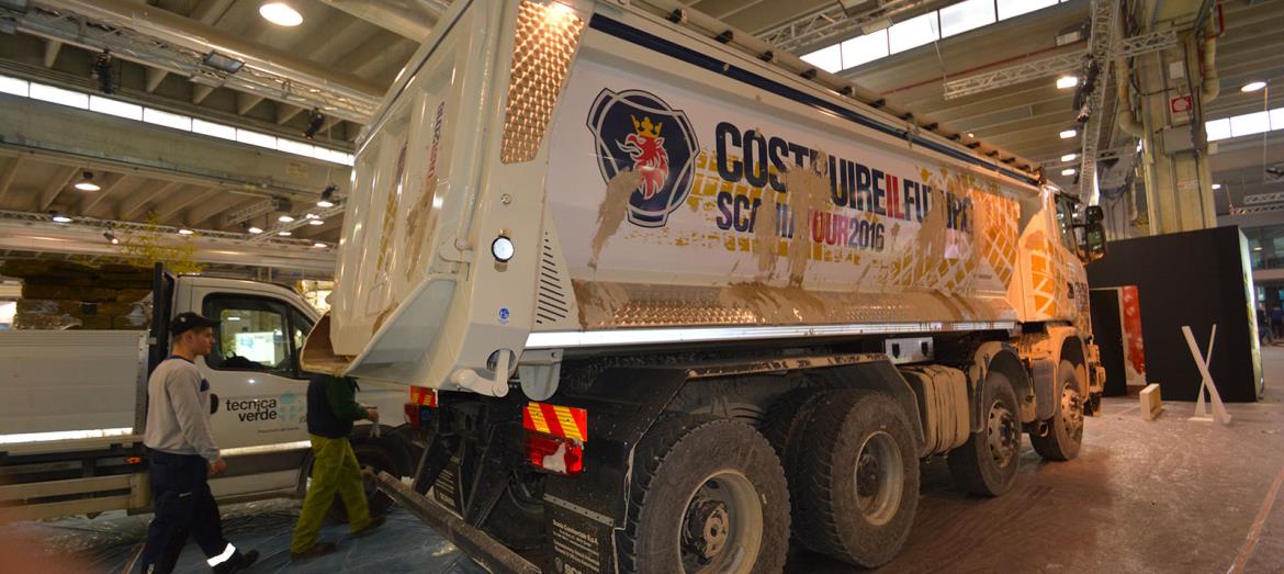 Nuovo anche il concetto di comunicazione che sottolinea le “varie anime” del produttore svedese, anime che ben si adattano a molti settori specifici che vanno oltre al semplice “ma rappresentatissimo” comparto della linea; in fiera si parlerà quindi di connettività, di sostenibilità (tema estremamente caro a Scania), ma anche di soluzioni su misura, non in questo caso uno slogan, ma un metodo di lavoro concreto che significa attento ascolto delle esigenze di ogni comparto industriale, costruzioni, ovviamente, in testa (ma si parlerà anche di municipalizzate, di ecologia, di veicoli speciali).