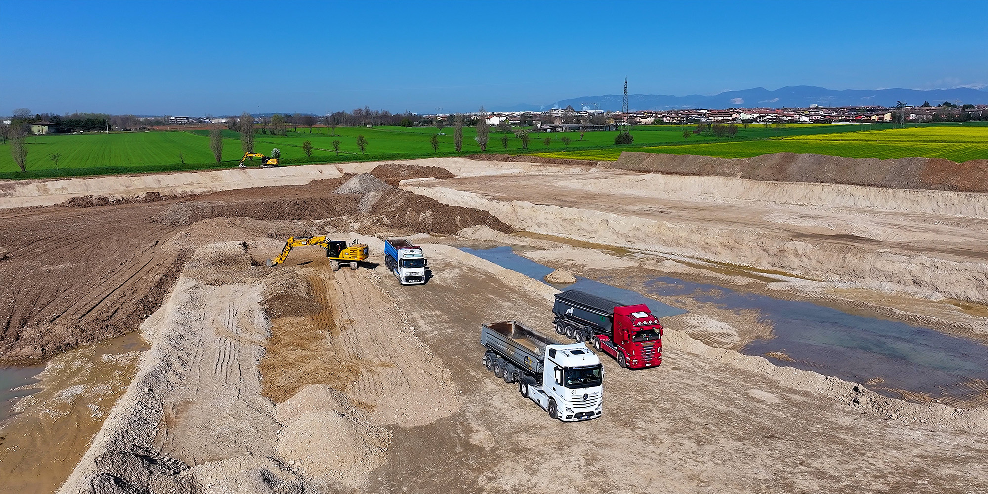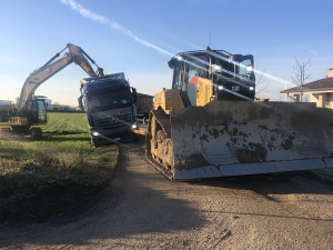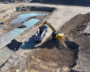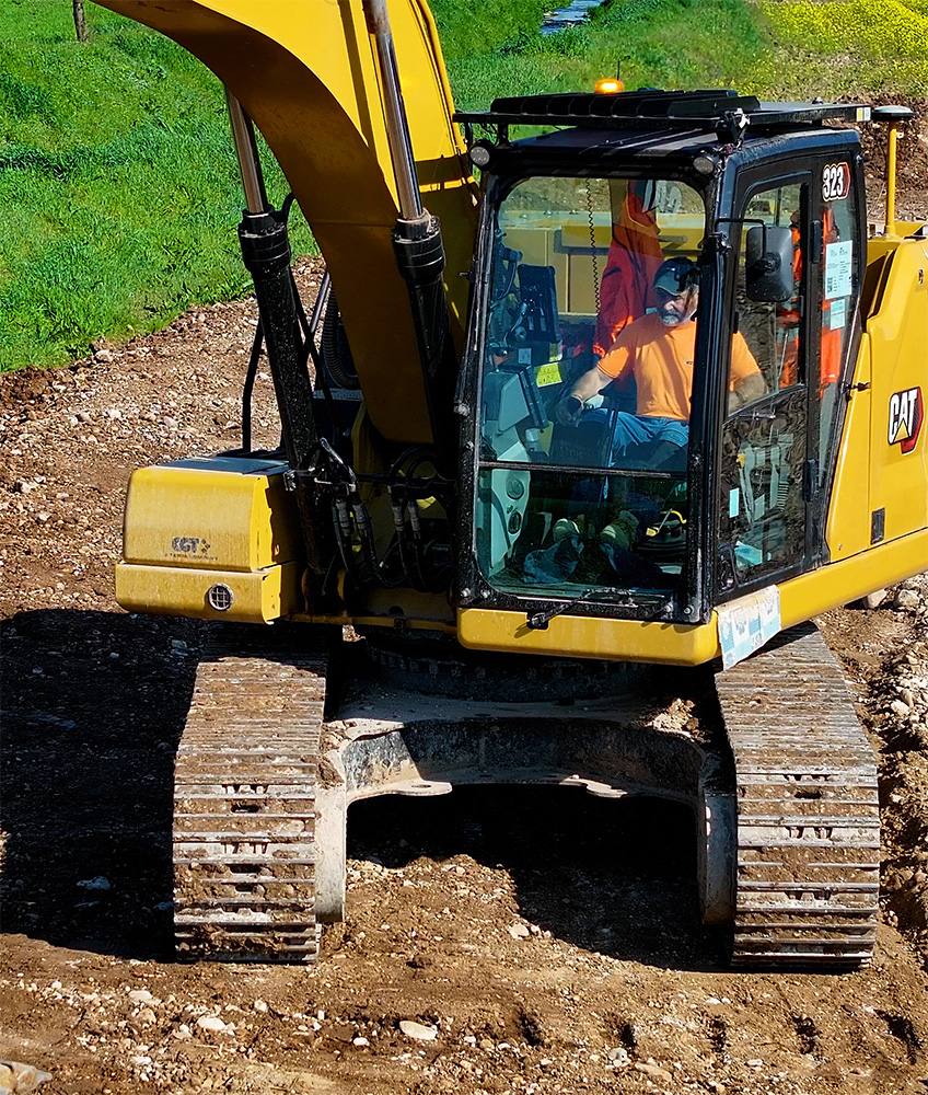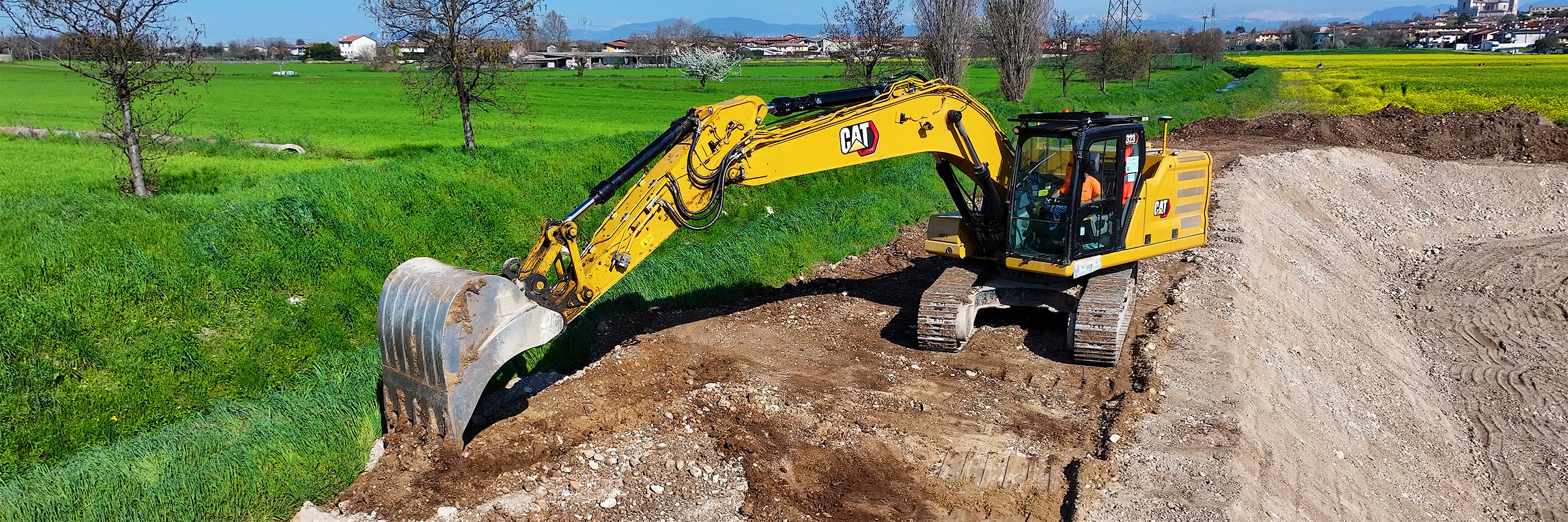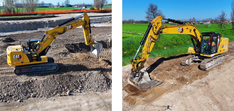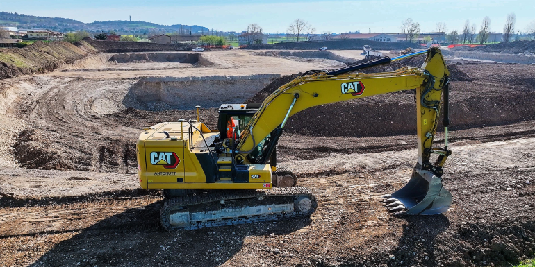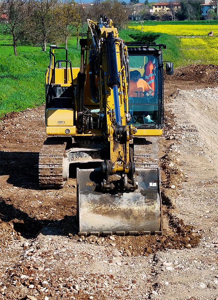 A supporto delle operazioni troviamo CGT (da tre generazioni fornitore e partner di Vezzola), che ha messo in campo macchine Caterpillar all’altezza della sfida. Al momento della visita della redazione di goWEM!, il cantiere di Castiglione delle Stiviere era animato da escavatori Caterpillar 323 Next Gen, macchine di ultima generazione che combinano potenza, precisione e tecnologia digitale. Con un peso operativo di circa 23 tonnellate e bracci ottimizzati per lo scavo ad alte prestazioni, questi escavatori garantiscono una capacità di scavare e movimentare terra impressionante, senza sacrificare la stabilità o il comfort dell’operatore.