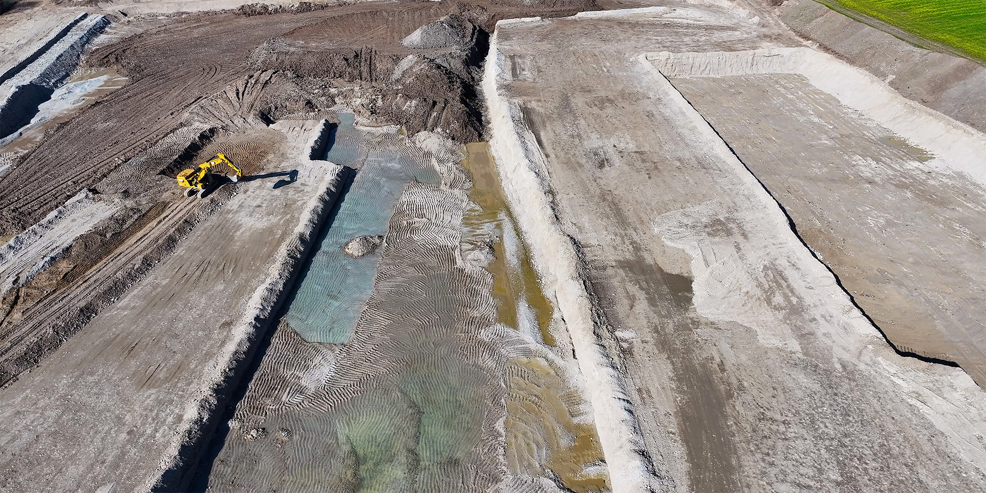 Sempre in cantiere, goWEM! ha raccolto anche la testimonianza di [Paolo Ducoli], direttore tecnico di Vezzola, per capire il filo conduttore che unisce l’esperienza dell’azienda in cantieri così complessi: “Questo intervento rappresenta per noi un tassello in una linea coerente su un certo tipo di operatività, attento all’ambiente. Da sempre, nella coltivazione delle cave di proprietà del gruppo Vezzola, dopo l’escavazione veniva eseguita una riqualificazione ambientale con sistemazione delle sponde, ripiantumazione e gestione del verde. Negli anni ci siamo impegnati anche nella costruzione e nella riqualificazione di discariche, con rivestimenti, capping, irrigazione delle essenze piantate”.