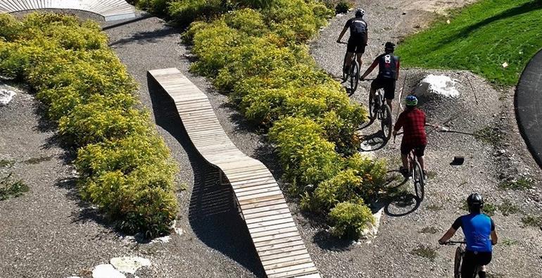 C'è anche un pump track che si adatta a tutti gli standard UCI per ospitare eventi di qualificazione, un airbag per l'allenamento di salto e un'area abilità e trucchi.