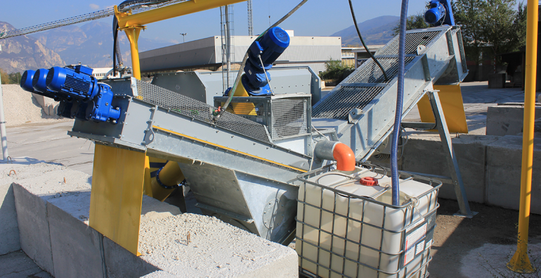 In questo modo è possibile intercettare il calcestruzzo ancora fresco proveniente dal cantiere, per scomporlo nelle sue componenti primarie e consentire che le stesse possano essere recuperate e