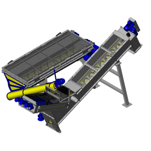 trattiene gli inerti con dimensione maggiore di 5 millimetri di diametro. Questi ultimi vengono trasportati da coclee e