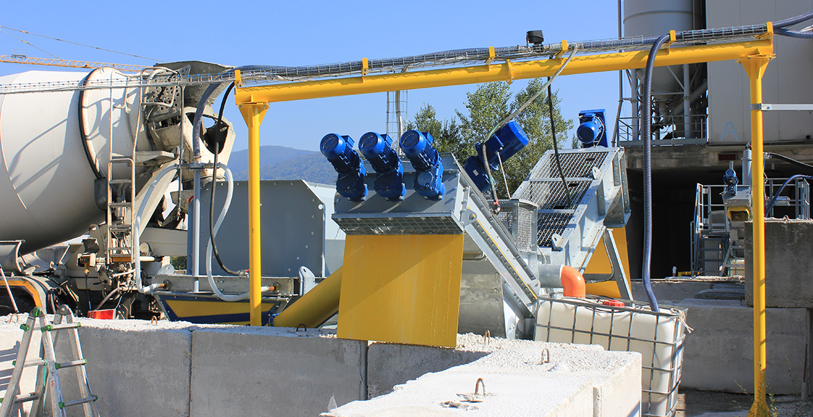 provenienti dal calcestruzzo contenuto nelle autobetoniere di rientro dai cantieri e mettere in pratica i princìpi della sostenibilità e dell’economia circolare negli impianti di betonaggio e di cava.