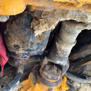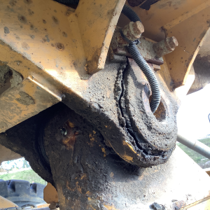 Nel caso dei dumper le zone di maggior sollecitazione riguardano innanzitutto l’area dell’articolazione: i due semitelai sono fissati in modo analogo agli snodi delle pale gommate [qui il nostro articolo sulle pale gommate usate] con due gruppi di cuscinetti e relativi perni, spessori e dei cilindri idraulici che comandano il movimento dello sterzo.