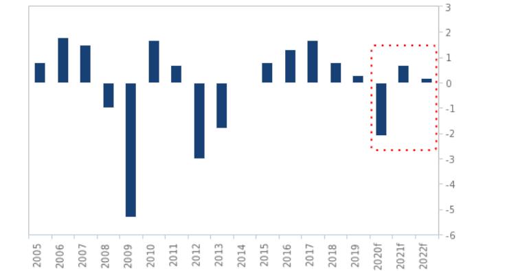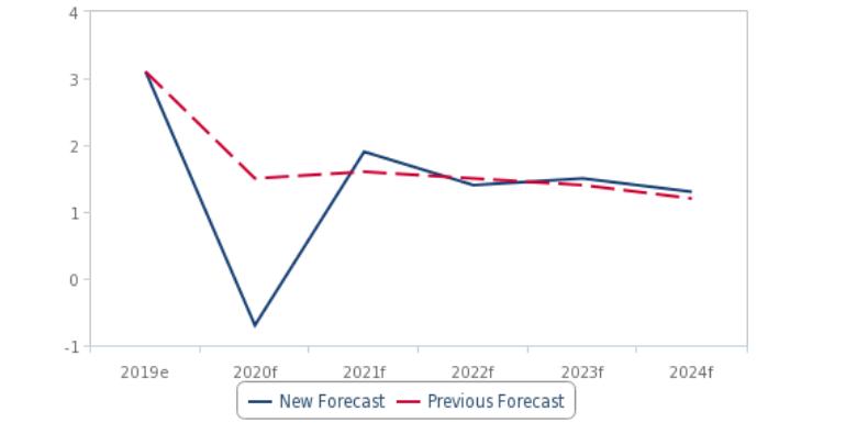 tornerà alla crescita, espandendosi dell'1,9% su base annua nel 2021 e di una media annuale dell'1,4% su base annua tra il 2022 e il 2024, sebbene si notino