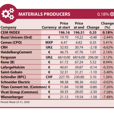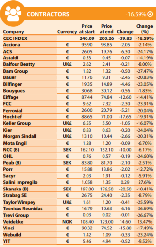 L'unico appaltatore a vedere un aumento del valore delle azioni è stata la società norvegese Veidekke, che è cresciuta del 13,47%: la società ha recentemente pubblicato i risultati finanziari per il secondo trimestre, annunciando un utile ante imposte di 47,5 milioni di € e un fatturato di 968 milioni di €.