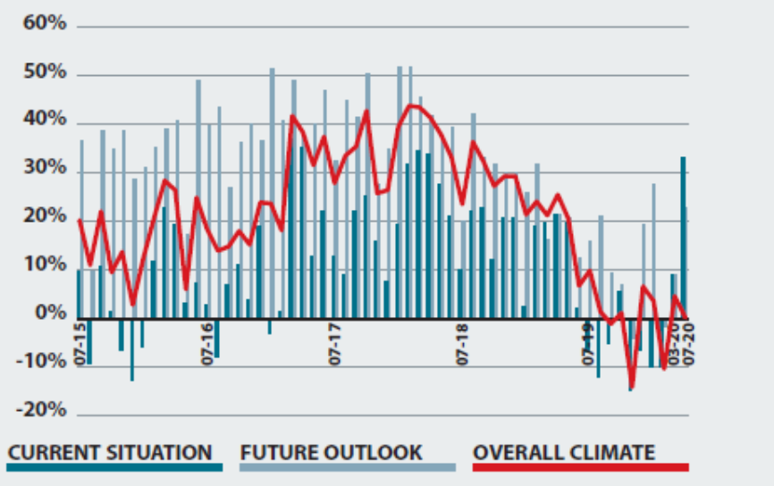 luglio 2020 è stato indiscutibilmente peggiore in termini di attività economica per la maggior parte degli intervistati. Ciò è plasticamente rappresentato da un saldo del -56,1%.