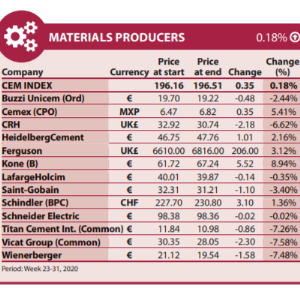 Finnish Kone è stata la società più performante in termini di prezzo delle azioni (+ 8,94%). con al secondo posto la società messicana