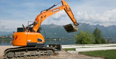 L'escavatore Doosan DX235LCR al lavoro per l'acquedotto Brianteo