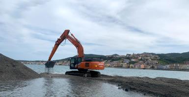 Cantieri costieri e portuali in Calabria con escavatori Hitachi ZX350-7 e supporto KMI