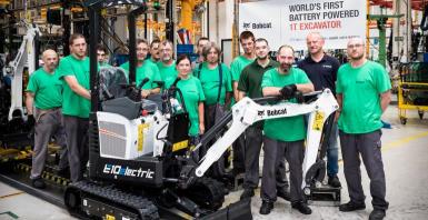 Il primo miniescavatore elettrico Bobcat esce dalla linea di produzione
