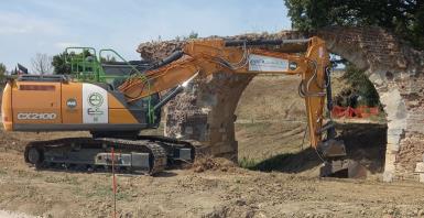 Un CASE CX210D restaura l’area archeologica del ponte di San Vito, nel riminese