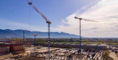Cinque gru a torre del produttore italiano Raimondi sono state impiegate a Pisa per costruire un ospedale.