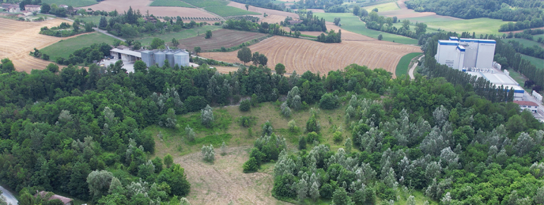 Al centro della foto, l'area di 'transizione' tra l'ecosistema forestale e l'ecosistema agricolo