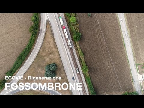 Uno dei cinque treni di riciclaggio di Ecovie, al lavoro sulla SS73BIS a Fossombrone